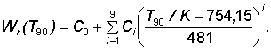 ●   Wr(T90) este o funcție de referință care caracterizează relația dintre un raport de referință Wr și temperatura T90;