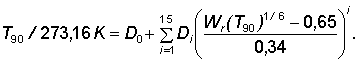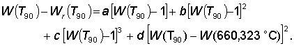 ●   ΔW(T90) este funcția care exprimă dependența de temperatură a abaterii  raportului W al termometrului de etalonat față de raportul de referință Wr.