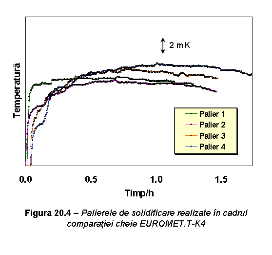 Noua procedură de realizare a punctului de solidificare a aluminiului stabilită și implementată cu noile echipamente dezvoltate a dus la creșterea duratei palierelor de solidificare de la 15 minute la aproape două ore. De asemenea, pentru toate cele patru paliere de solidificare realizate în timpul măsurărilor din cadrul  EUROMET.T-K4 (Figura 20.4):